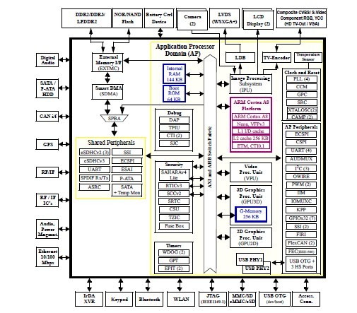 MCIMX535DVV1C features: (1)MMU, L1 instruction and L1 data cache; (2)Unified L2 cache; (3)Target frequency of the core (including Neon, VFPv3 and L1 cache): 1 GHz; (4)Neon coprocessor (SIMD media processing architecture) and vector floating point (VFP-Lite) coprocessor supporting VFPv3; (5)TrustZone.